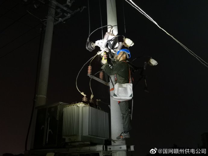 9月16日晚,國網(wǎng)贛州開發(fā)區(qū)供電公司組織施工人員在10千伏湖水線塔前公變更換損壞的設(shè)備線夾,深夜及時(shí)搶修獲贊許。公司大力推行優(yōu)質(zhì)服務(wù),做到“有求必應(yīng),主動(dòng)作為”,為了萬家燈火“不打烊”。