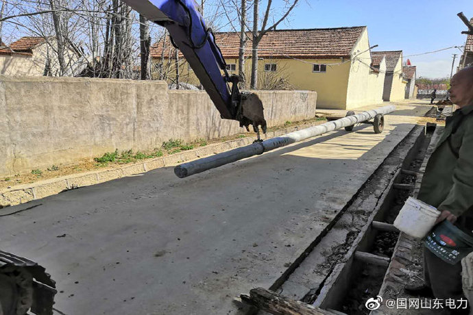 【升級農村電網 助力經濟發(fā)展】4月6日,國網臨朐縣供電公司員工在辛寨鎮(zhèn)張家焦頭村運送電桿、開展農網改造。施工人員對該村配變臺區(qū)進行升級改造,埋設電桿15基,架設低壓線路0.74千米,改造低壓電纜線路0.05千米,改善了村內整體用電狀況,為鄉(xiāng)村發(fā)展提供了更加可靠的電力保障。 ????