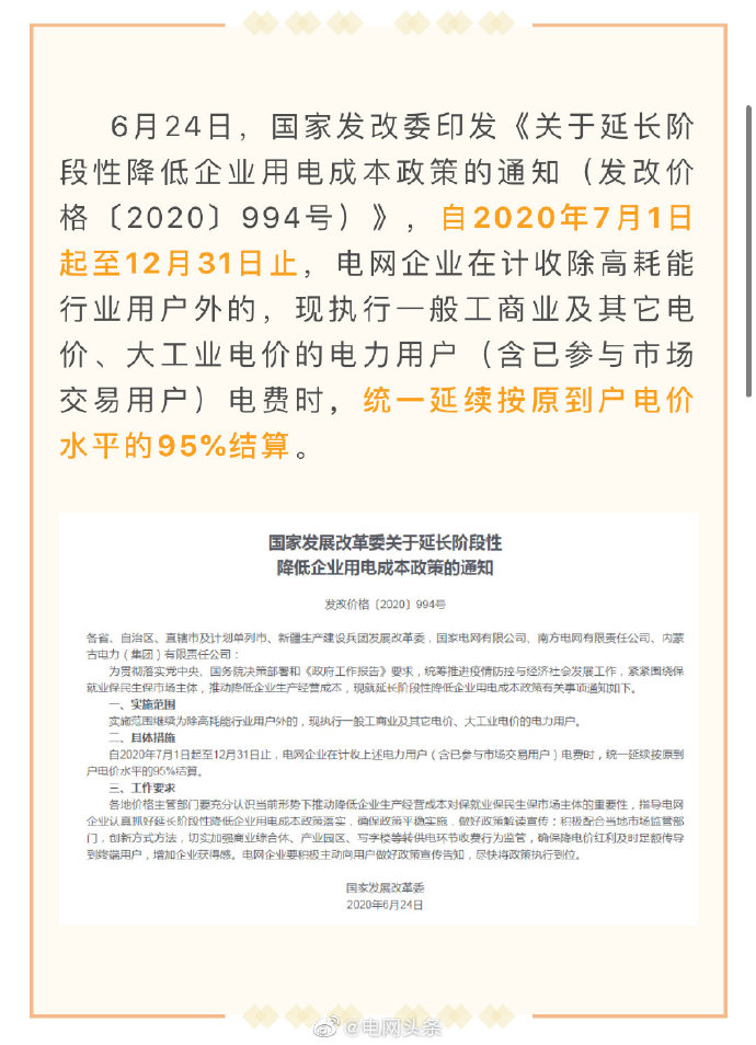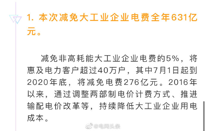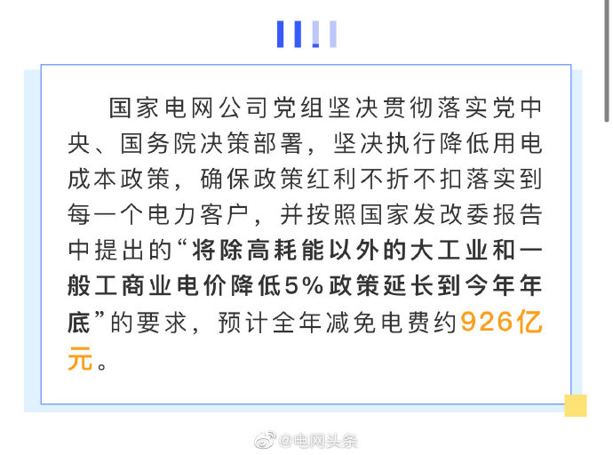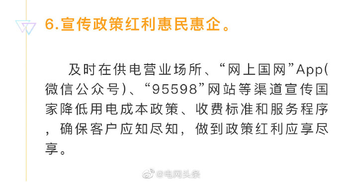 五是電力營(yíng)商環(huán)境持續(xù)優(yōu)化。實(shí)施優(yōu)化營(yíng)商環(huán)境兩年行動(dòng)計(jì)劃,世界銀行“獲得電力”指標(biāo)排名從去年的第14位上升至第12位,為我國(guó)營(yíng)商環(huán)境總體排名從46位提高到31位作出貢獻(xiàn)。堅(jiān)決落實(shí)國(guó)家降價(jià)降費(fèi)部署,全面完成一般工商業(yè)平均電價(jià)再降低10%任務(wù),降低用戶(hù)成本負(fù)擔(dān)641億元。全年有力保障了社會(huì)用電需求,實(shí)現(xiàn)迎峰度夏、度冬期間電力供需平穩(wěn)有序。