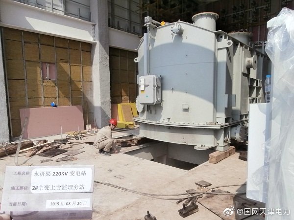 8月27日,國網(wǎng)天津建設(shè)公司在建工程永濟渠220kV變電站工程2號、3號主變壓器順利上臺就位。據(jù)悉,該站址遠期為國際商貿(mào)物流園,變電站總平面布置為近似長方形,圍墻中心線南北最長116.00m,東西長64.2m,圍墻中線以內(nèi)面積7447.3m2配電裝置樓建筑面積7188.5m2,其中地下3191.20m2,地上面積3997.30m2,基礎(chǔ)形式采用淺基礎(chǔ),配電裝置樓局部半地下一層,地上兩層鋼框架結(jié)構(gòu)。本期建設(shè)#2、#3主變壓器及其220kV、110kV、35kV側(cè)中性點設(shè)備,本期主變?nèi)萘?40MVA。