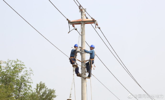 【頭頂烈日施工 揮灑汗水為民】7月31日,國網煙臺市福山區(qū)供電公司施工人員冒高溫濕熱天氣,對清洋鎮(zhèn)10千伏包家溝2臺區(qū)新建工程施工作業(yè),新立電桿17基,變壓器一臺,架設線路1.4公里,炎炎夏日保障周邊區(qū)域可靠供電。 ????