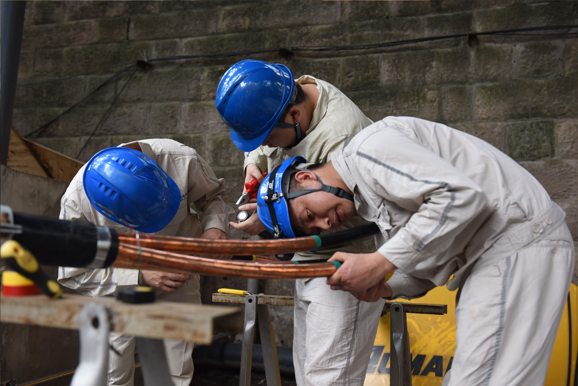 8日,江北公司在多功能廳組織了10千伏電纜附件制作人員理論考試。9日-12日,該公司舉行了為期4天的實作考試,各外施工單位、集體企業(yè)以及運維班組的電纜作業(yè)人員共計79個隊伍270余人參與考評,要求在2小時內(nèi)完成電纜中間接頭的制作。從切割電纜、剝除外護層,到安裝中間接頭、恢復主絕緣,考生們兩人一組,每一步驟都聚精會神,力求精益求精。