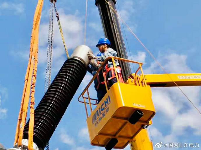 【電纜入地 為政府工程讓路】8月5日,國網(wǎng)淄博供電公司帶電作業(yè)人員在10千伏永勝線12號桿帶電T接電纜,為政府道路拓寬工程讓路。淦河路拓寬是今年周村區(qū)政府重點工程,沿河兩岸13至15號桿正好處在道路拓寬范圍內(nèi),為配合道路施工,從12號桿T接電纜入地至16號桿,保障工程順利實施。 ????