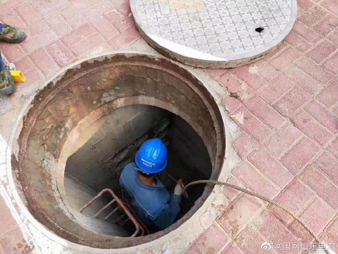 臨沂供電公司在朝陽社區(qū)電纜入地施工現(xiàn)場