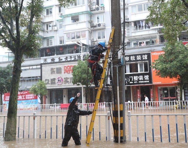 近期,長江流域的強降雨導(dǎo)致多地電力設(shè)施不同程度受損。目前,電網(wǎng)主網(wǎng)運行平穩(wěn),受損配網(wǎng)快速開展搶修。