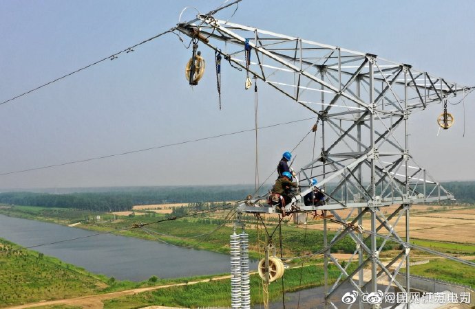 6月8日,電力施工人員冒著高溫睢寧縣魏集鎮(zhèn)境內(nèi)的220千伏西郊紅衛(wèi)至220千伏童畫(huà)變輸電線路25號(hào)鐵塔上緊線。 據(jù)悉,220千伏西郊紅衛(wèi)至220千伏童畫(huà)變輸電線路,是睢寧縣迎峰度夏一項(xiàng)重點(diǎn)工程,該工程計(jì)劃于7月初送電。工程完成后將有力保障睢寧北部地區(qū)迎峰度夏期間可靠供電。