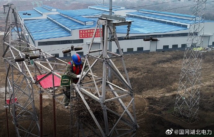 鄂州供電公司爬上鐵塔清理鳥(niǎo)巢