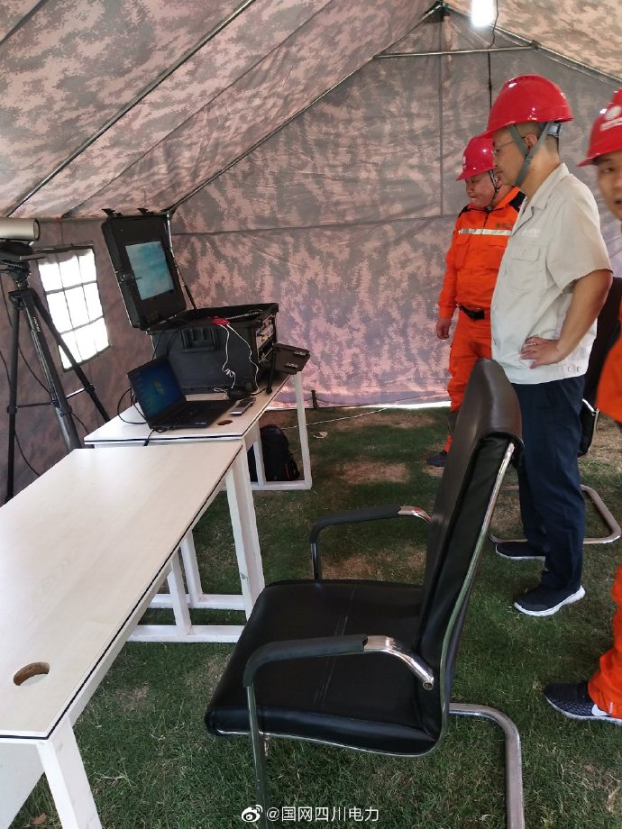 此次模擬演練分為兩個階段。第一階段,應急救援基干分隊迅速組織第一梯隊人員抵達受災現(xiàn)場搭建指揮帳篷,并做好應急照明調(diào)試準備。與此同時,使用無人機對倒塌桿塔進行勘察,并在第一時間通過應急通訊系統(tǒng),與國網(wǎng)福建電力應急指揮中心完成互聯(lián)互通,匯報災損情況。在隨后的第二階段里,排澇組根據(jù)當?shù)卣肮╇姽菊埱?,運用排澇車、污水處理泵等多種排澇裝備,配合某鄉(xiāng)鎮(zhèn)政府完成多處內(nèi)澇地段的排澇作業(yè)。