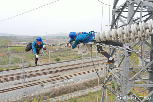 【掛線操作 勒出三塊“腹肌”】4月14日,國網(wǎng)日照供電公司工作人員在110千伏傅巨牽線配鐵路部門巨峰牽引站檢修。工作人員趴在距離地面25米的導(dǎo)線上進行分流補強工作,導(dǎo)線橫向1米的晃動幅度和單相導(dǎo)線20分鐘的工作時長,是對工作人員體力和技術(shù)的嚴峻考驗。一基鐵塔1個小時的“掛線操作”完成后,工作人員腹部勒出了三塊“腹肌”。